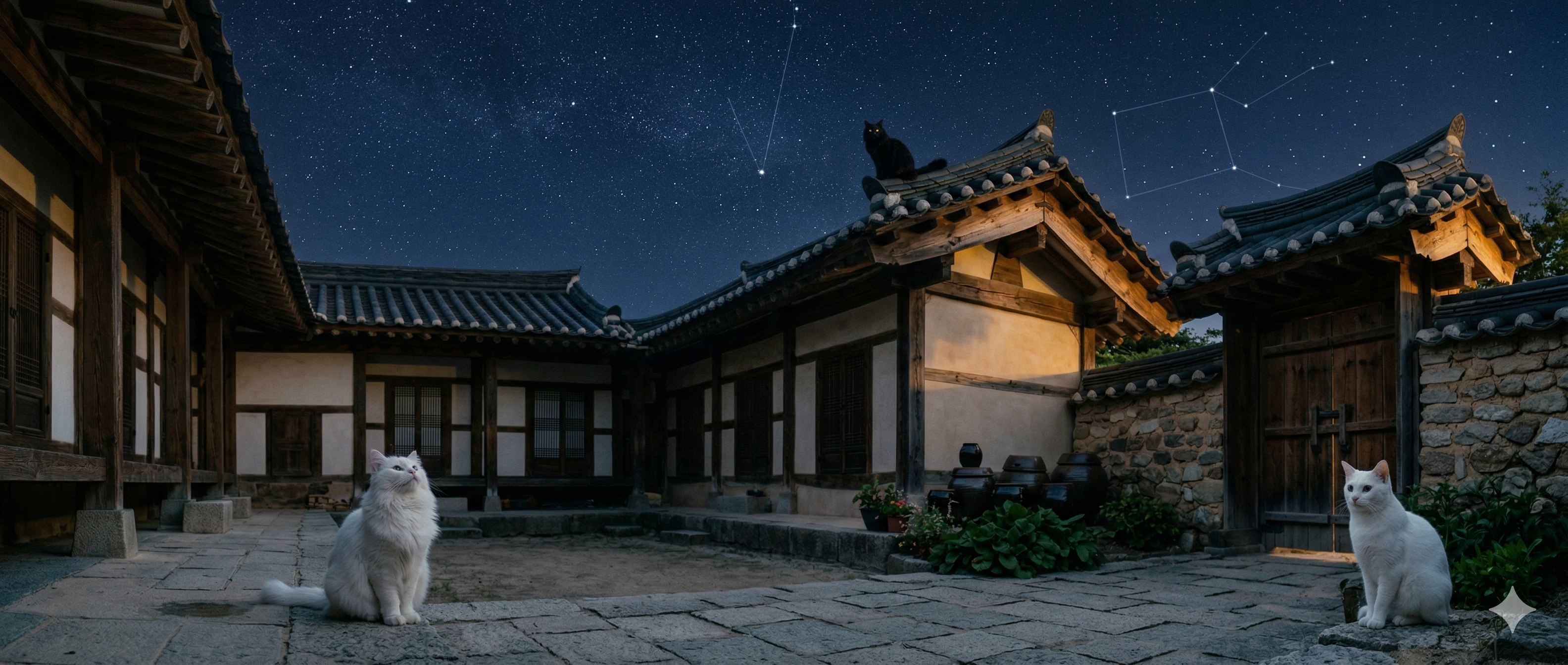 #언리얼엔진5 #UE5 #3D애니메이션 #한옥마당 #에피소드100 #늦여름밤 #별자리 #여름가을경계 #고양이삼남매 #루나라온다온