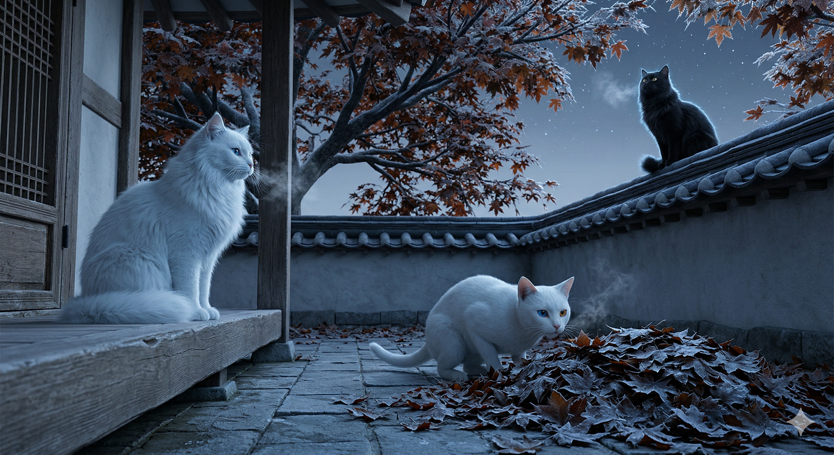 #언리얼엔진5 #UE5 #3D애니메이션 #한옥마당 #서리직전 #새벽냉기 #가을새벽 #계절경계 #고양이삼남매 #루나라온다온