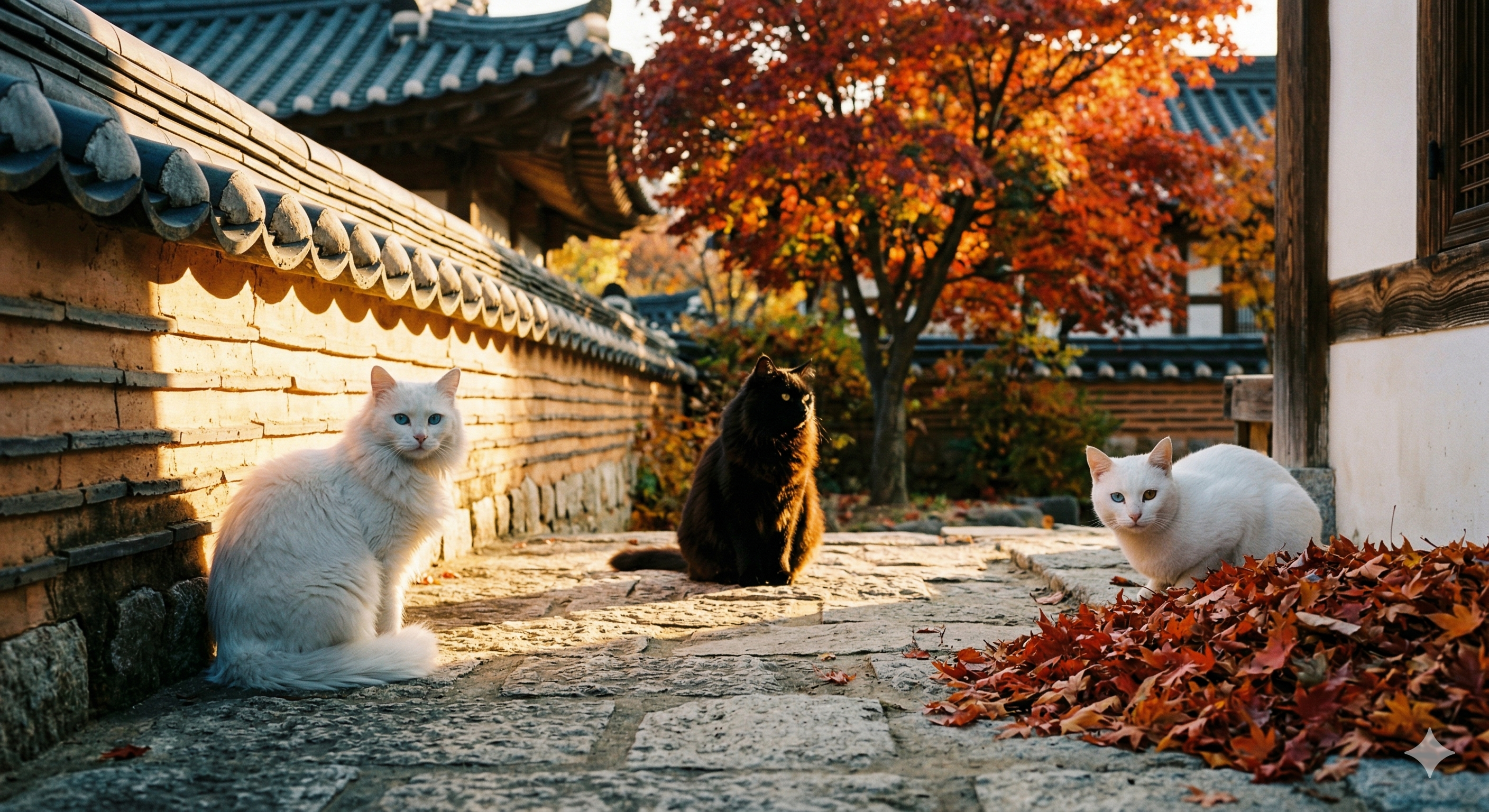 #언리얼엔진5 #UE5 #3D애니메이션 #한옥마당 #가을오후 #장그림자 #황혼직전 #색온도 #고양이삼남매 #루나라온다온