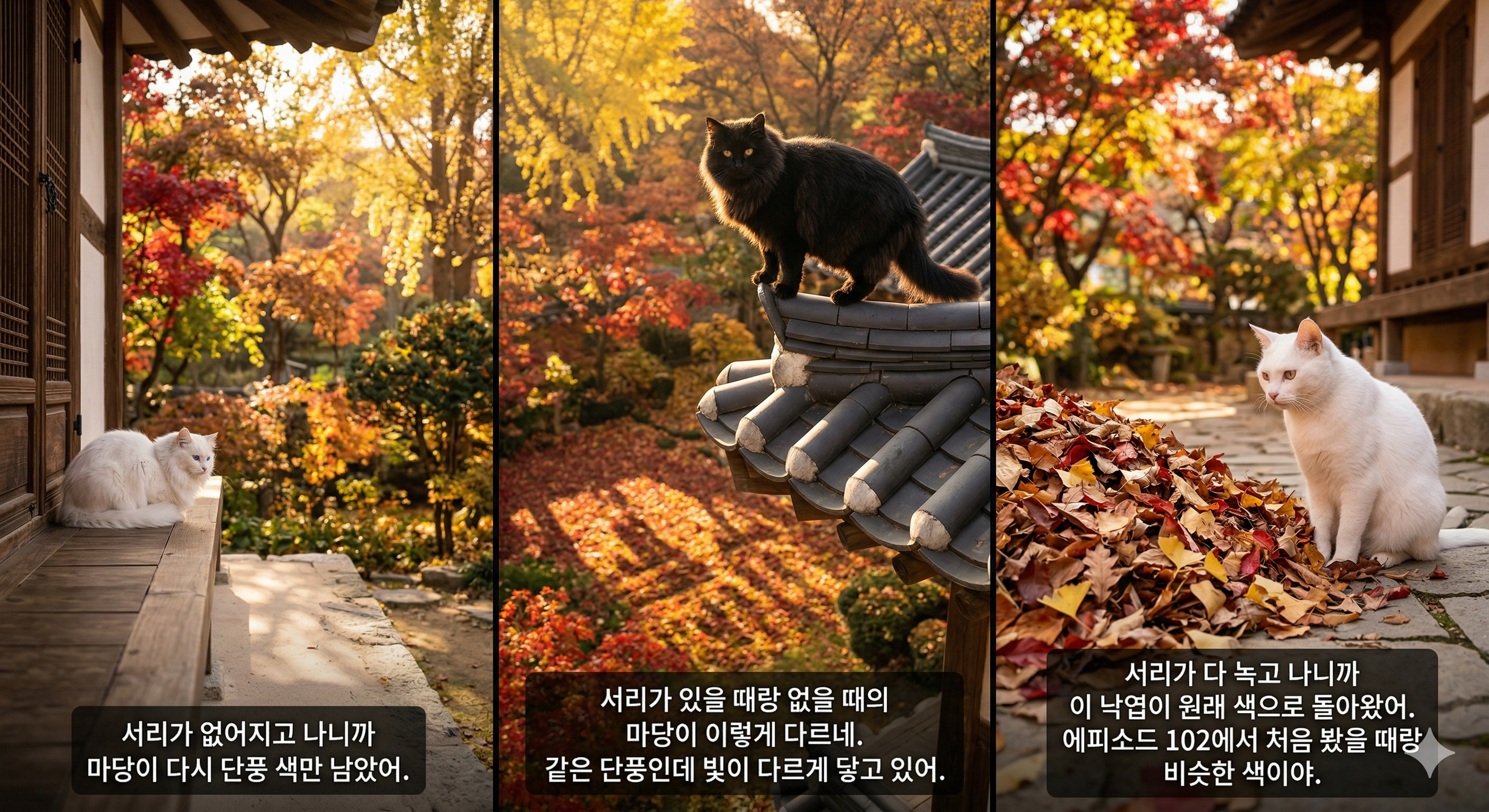 에피소드 116: 가을 늦은 아침 — 한옥 마당, 서리가 걷히고 단풍이 빛 속에 드러나다