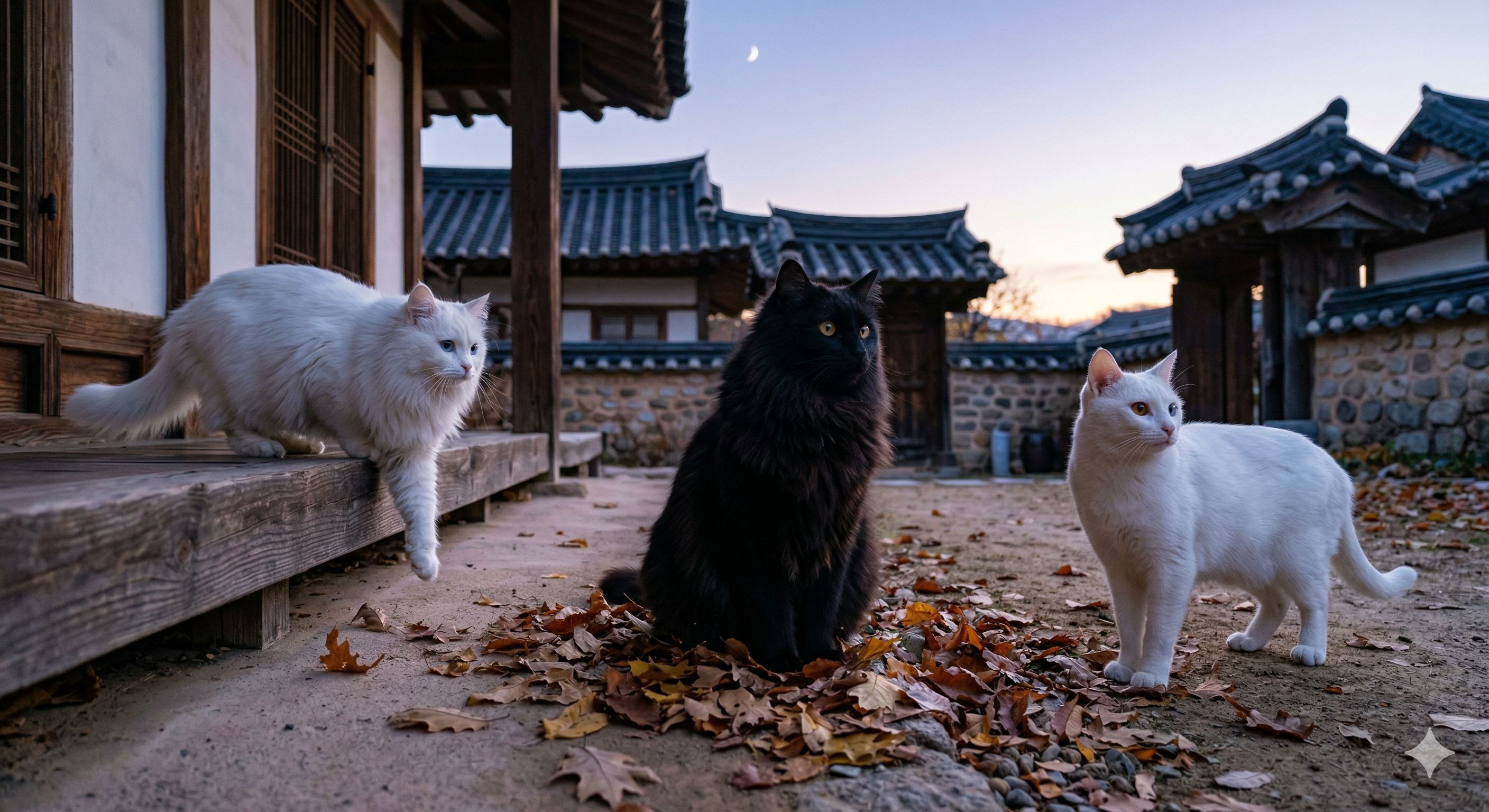 #언리얼엔진5 #UE5 #3D애니메이션 #한옥마당 #새벽여명 #달빛과여명 #SkyAtmosphere #LumenGI #고양이삼남매 #루나라온다온