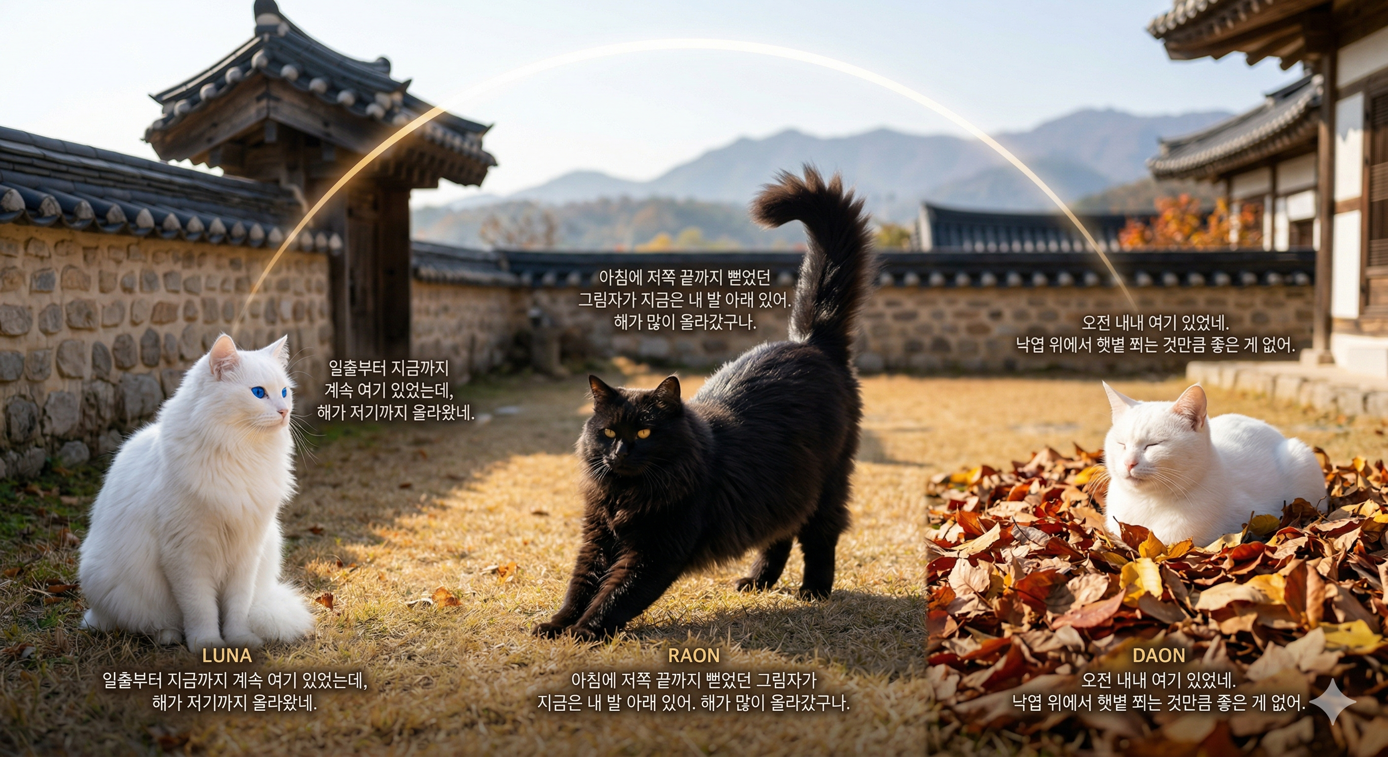 | 에피소드 132: 오전의 시간 — 세 고양이가 가을 한옥 마당의 햇살 속에서 각자의 자리를 찾다 (0) | 2026.04.13 |