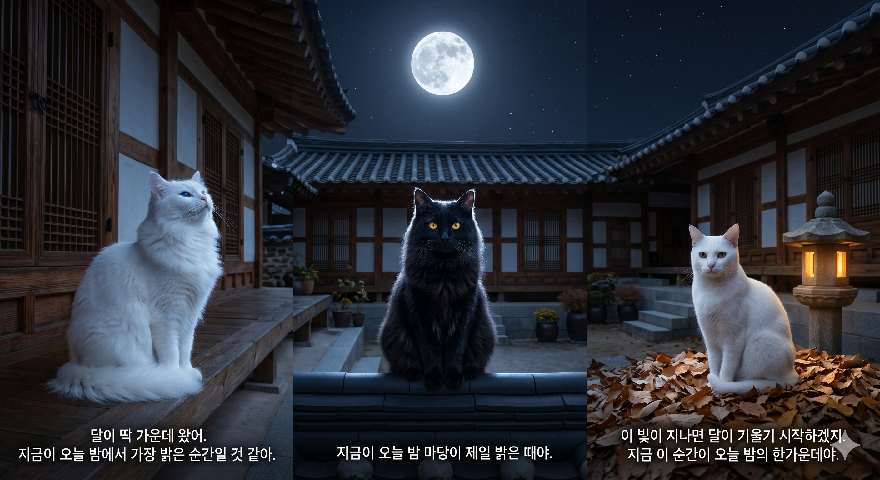 #언리얼엔진5 #UE5 #3D애니메이션 #한옥마당 #야반 #달빛정점 #야간조명 #고양이삼남매 #루나라온다온