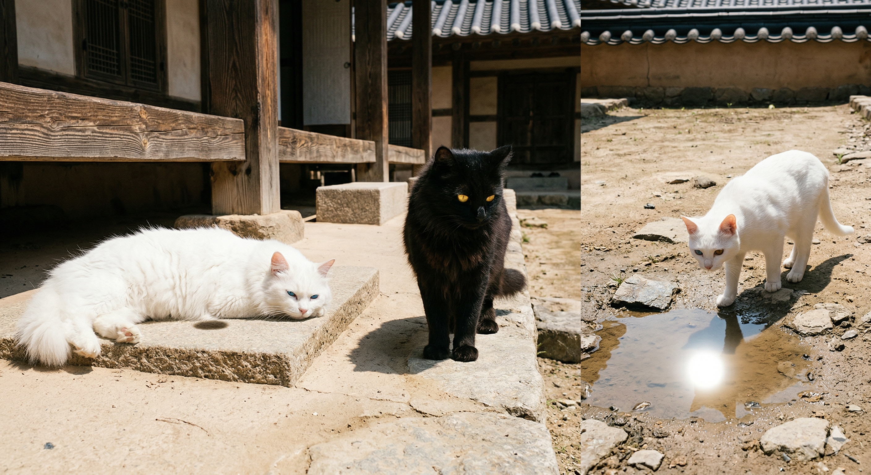#언리얼엔진5 #UE5 #3D애니메이션 #한옥마당 #여름정오 #수직직사광 #태양고도절정 #수직그림자 #아지랑이 #고양이 #루나라온다온 #수면반영3부작완성 #UnrealEngine5 #HanokCourtyard #SummerNoon #VerticalDirectLight #SunAltitudePeak #VerticalShadow #HeatHaze #3DAnimation #Cats #LunaRaonDaon