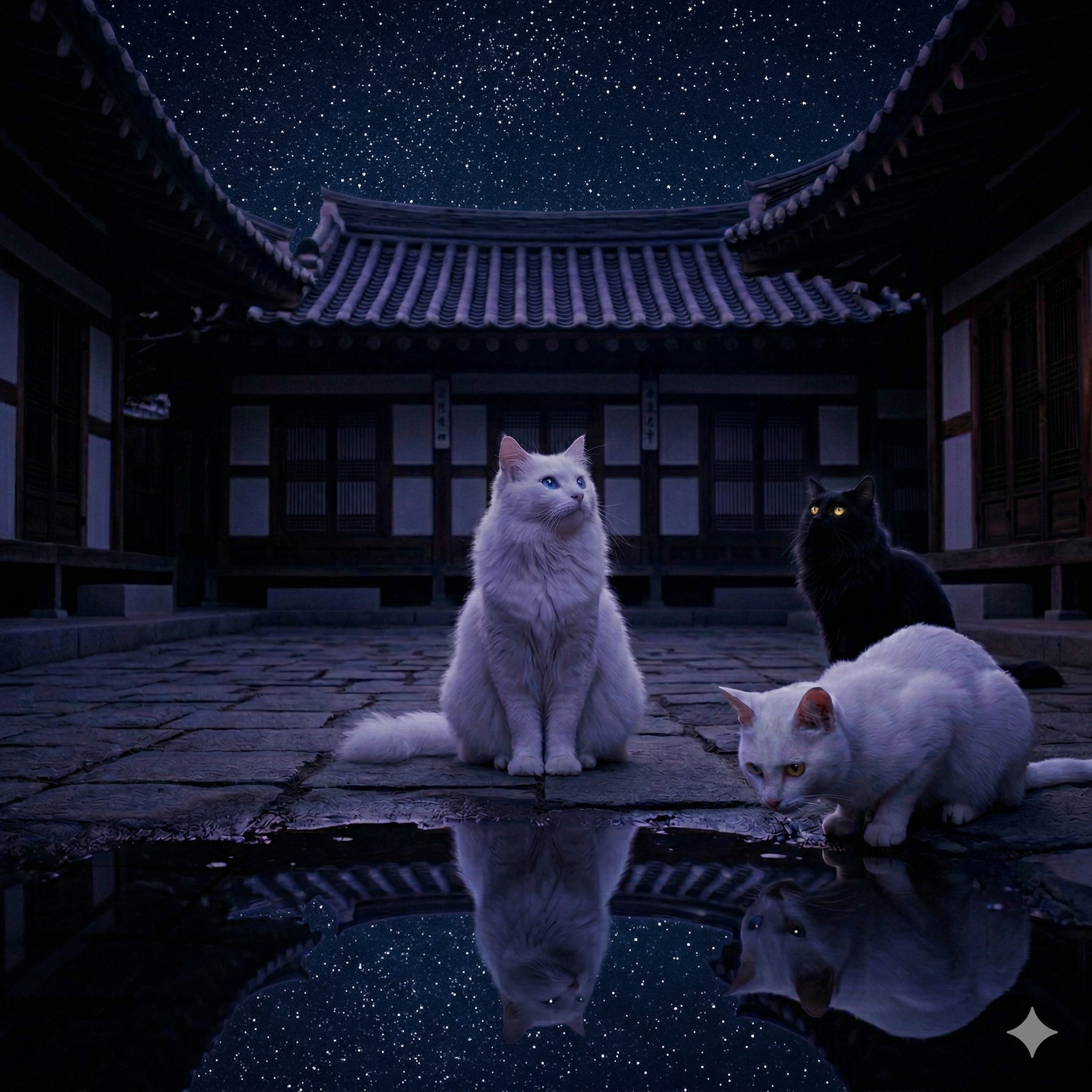 #언리얼엔진5 #UE5 #3D애니메이션 #한옥마당 #완전한밤 #별빛만의밤 #달빛이전 #스타필드 #LumenGI #고양이삼남매