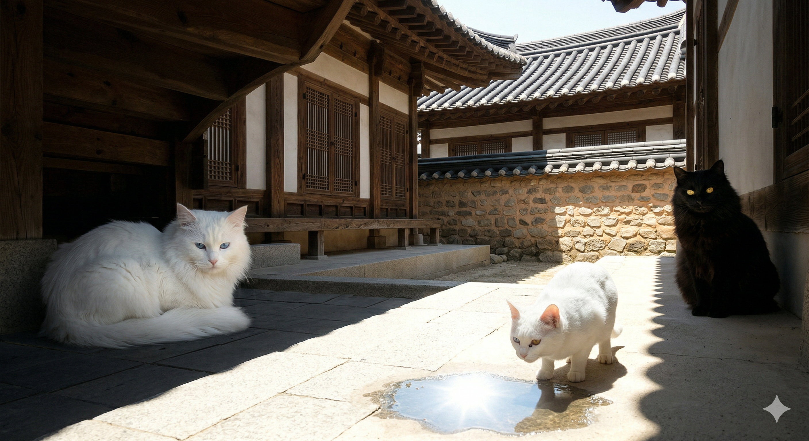 #언리얼엔진5 #UE5 #3D애니메이션 #한옥마당 #한낮햇살 #여름정오 #LumenGI #아지랑이 #고양이삼남매 #루나라온다온