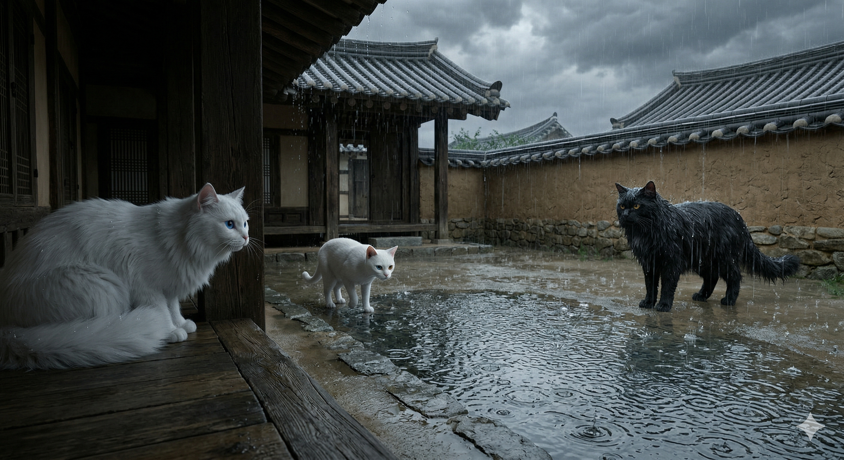 하늘이 어두워지는 속도가 빨랐다. 맑았던 하늘이 회색으로 바뀌고, 첫 빗방울이 마당 돌바닥에 떨어지기 시작했다.