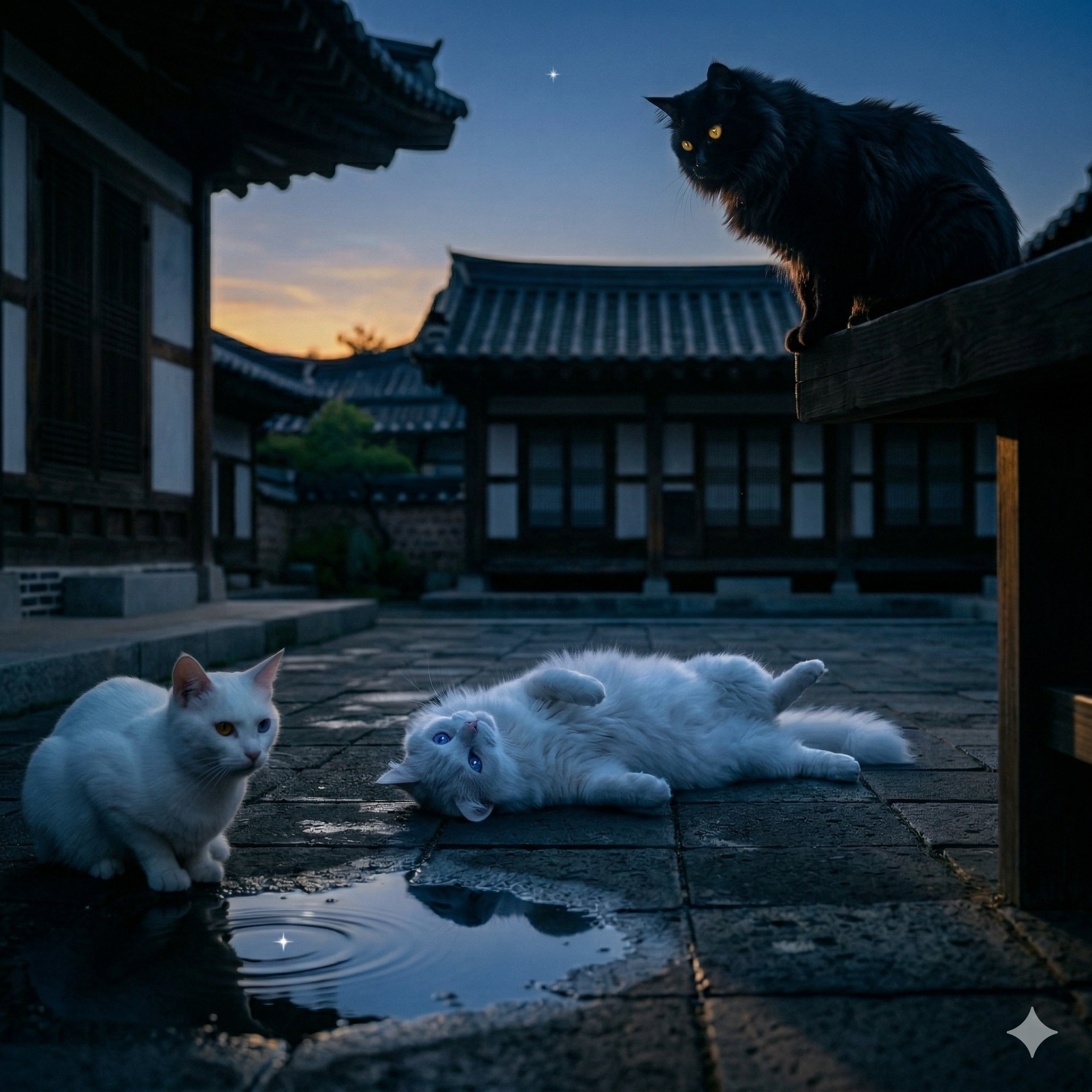 #언리얼엔진5 #UE5 #3D애니메이션 #한옥마당 #소나기후밤하늘 #첫별 #StarfieldRendering #SkyAtmosphere #고양이삼남매 #루나라온다온