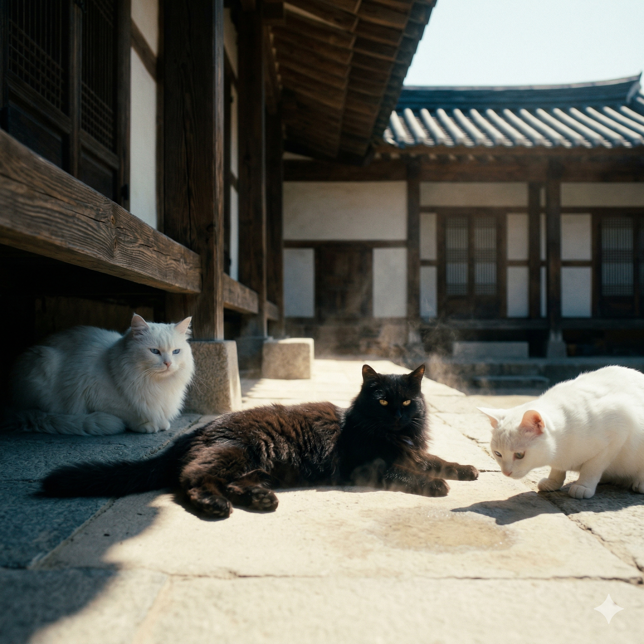 #언리얼엔진5 #UE5 #3D애니메이션 #한옥마당 #늦여름 #한낮더위 #복사열 #아지랑이 #Niagara #고양이삼남매 #루나라온다온